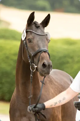 •*06.04.2012•Farbe: Dunkelbraun•Stockmaß: 167 cm•Bewertung: 9 7 7 / 8 8,5 8 / 8 (Z)•SLP: 7,34 in Fritzlar 2015•Zuchtleistung: 9 / 9•Leistungsstutbuch der FN: A / D