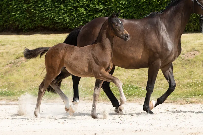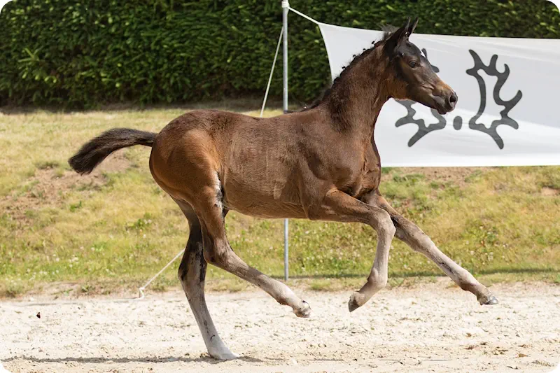 Geb.:04.04.2022Farbe:DunkelbraunDie Halbblüterin Herzblut ist chic und edel, mit sehr gutem Körperbau und guter Oberlinie. Sie ist frohwüchsig und steht auf einem guten Fundament. Ihr Schritt und der Galopp korrespondieren und sind sehr qualitätsvoll. Aber auch im Trab weiß sie sich zu bewegen. Ihre aufgeschlossene Art und ihre Unerschrockenheit machen den Umgang mit ihr sehr leicht. Mutter Pr.St. Herzklopfen war bis 2015 im Turniersport (Dr.,Spr.,VS) und ging dann in die Zucht. Ihr Vater HERZOG TSF war im Springparcours der schweren Klasse erfolgreich und Großvater Tivano im Dressurviereck bis St. Georg. Herzblut hat über ihren Vater INTENDANT xx eine besondere Genetik in sich. INTENDANT xx – Nachkommen sind vor allem im Springsport und in der Vielseitigkeit erfolgreich unterwegs.