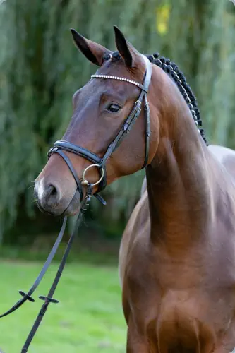 •*03.04.2020•Farbe: Dunkelbraun•Stockmaß: 168 cm•Ausbildungsstand: geritten, Dr.Pf.A NiveauGroßrahmig, mit harmonischen Körper und guter Oberlinie steht unser Nachtgoldda. Er ist korrekt im Fundament und besitzt drei sehr gute Grundgangarten. Besonders der Schritt ist sehr raumgreifend und fleißig, sein Trab taktmäßig und locker und der Galopp ausbalanciert und gut durchgesprungen. Er kommt sehr gut mit seinem Körper zurecht und zeigt das auch beim Freispringen. Dort punktet er mit Geschick und Lerneifer. Nachtgold ist neugierig, freundlich und hat ein ruhiges Wesen.… weiterlesen