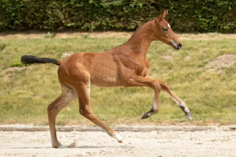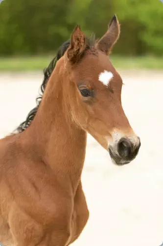 •*08.05.2023•Farbe: Braun•Stockmaß: 140 cm (Dezember 2023)•Prämienfolhlen der Fohlensch 2023 in Elmarshausen.Championatsfohlen bei der Fohlenschau in Elmarshausen ist dieser interessant gezogene Sohn des jungen Vererbers Olymp. Typvoll mit harmonischer Oberlinie und bestem Körperbau besitzt Nachtolymp drei qualitätsvolle Grundgangarten, wobei er ganz besondere Höhepunkte im Galopp setzt (Note 9). Nachtolymp ist immer gut gelaunt und hat ein dem Menschen zugewandtes Wesen. Er ist frohwüchsig und steht auf korrekten Fundament. Vater Olymp ist 2023 altersgemäß siegreich in Dressurpferdeprüfungen der Kl.L und bundeschampionatsqualifiziert. Die interessante Generationenfolge von Helium – Imperio – Hohenstein wird dokumentiert durch die guten Rittigkeitsnoten in den Hengstleistungsprüfungen. Zudem befindet sich der Rittigkeitsgarant E.H. KASIMIR TSF auf der Mutterseite.